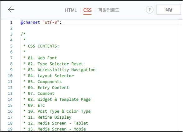 글자 크기, 색깔 등을 수정할 수 있는 CSS 탭을 클릭합니다.