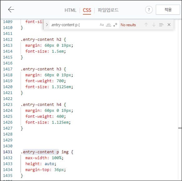 Tistory Poster 스킨은 entry-content로 CSS에서 검색하면 되지만, 다른 Tistory 스킨 검색어는 다르므로 아래 스킨별 검색어를 참고 바랍니다.